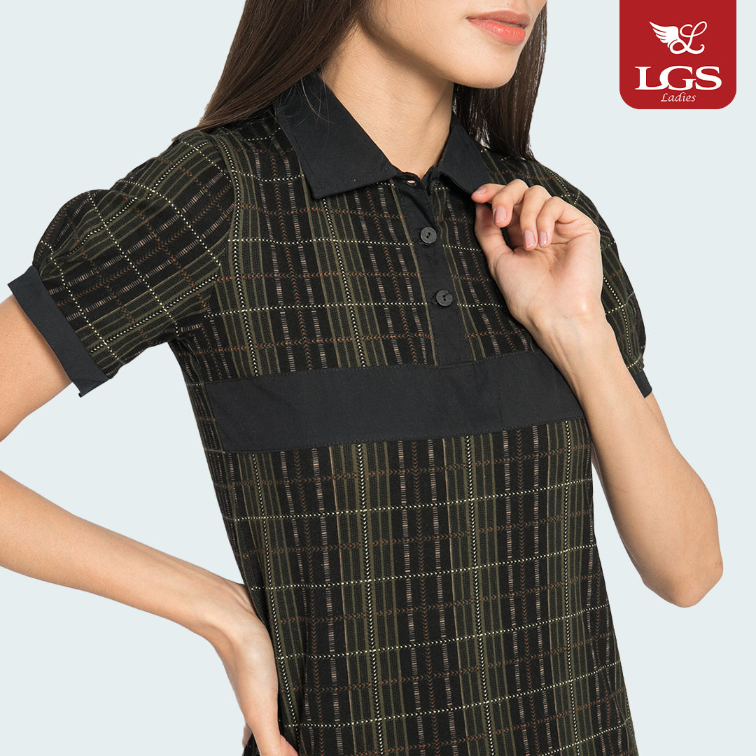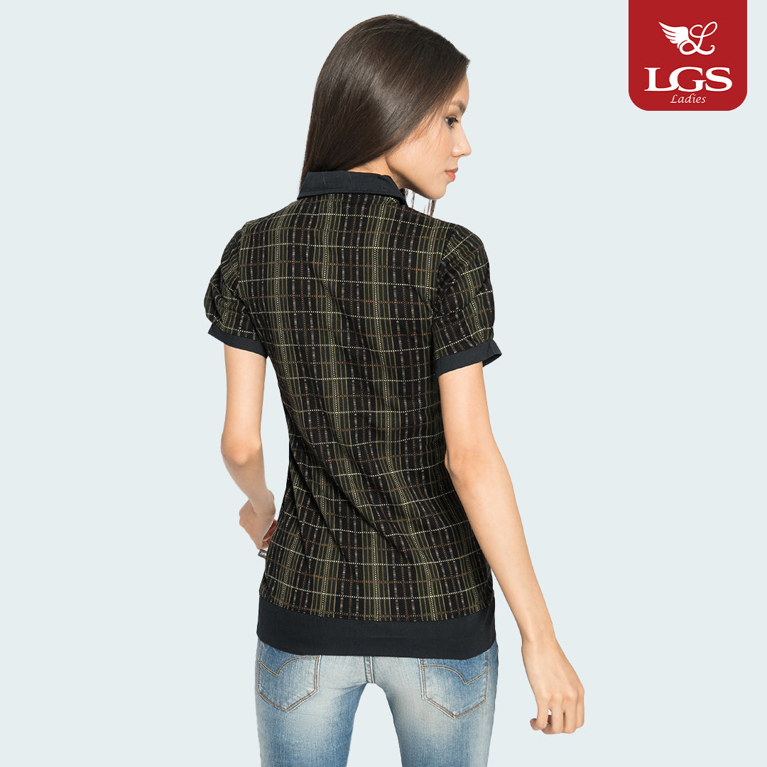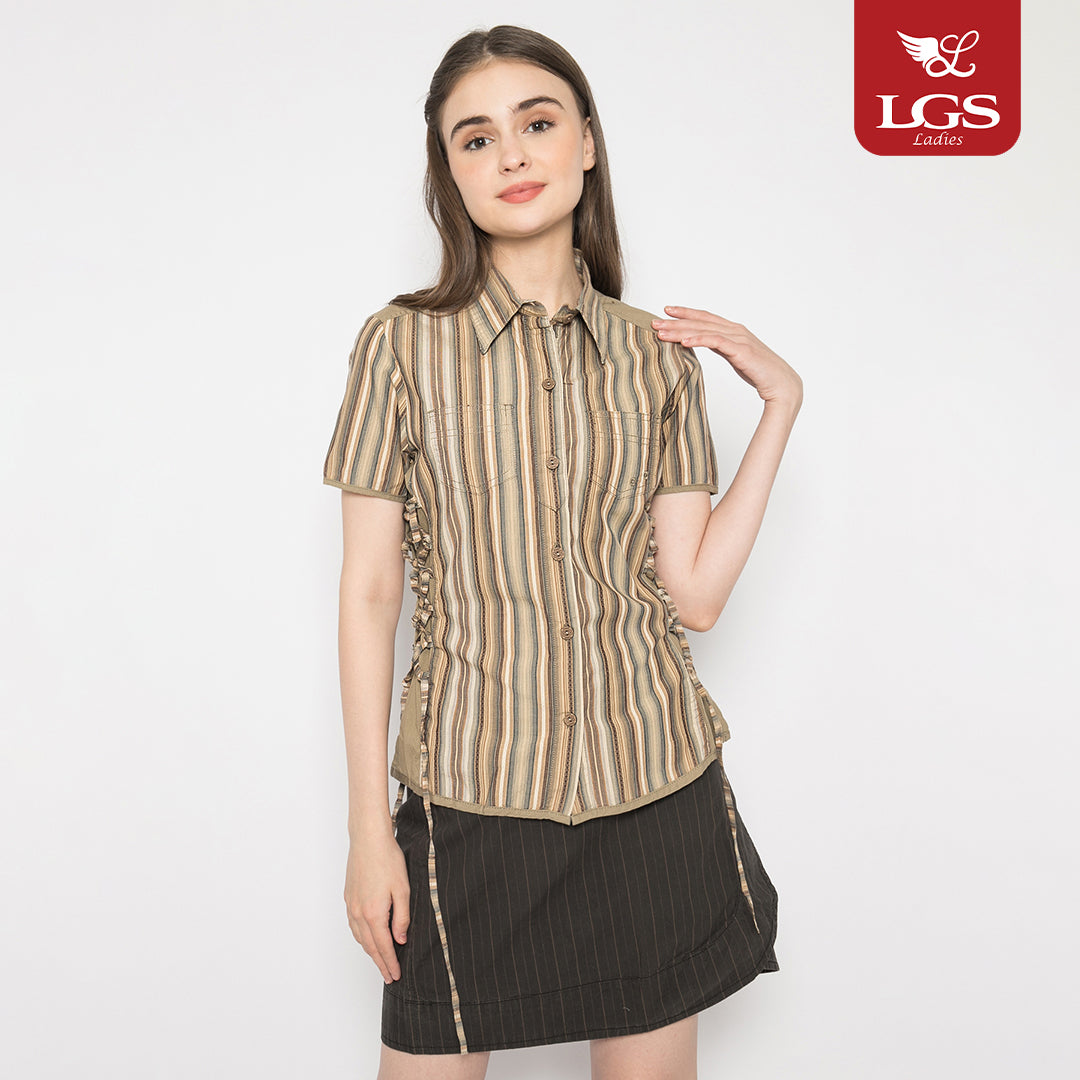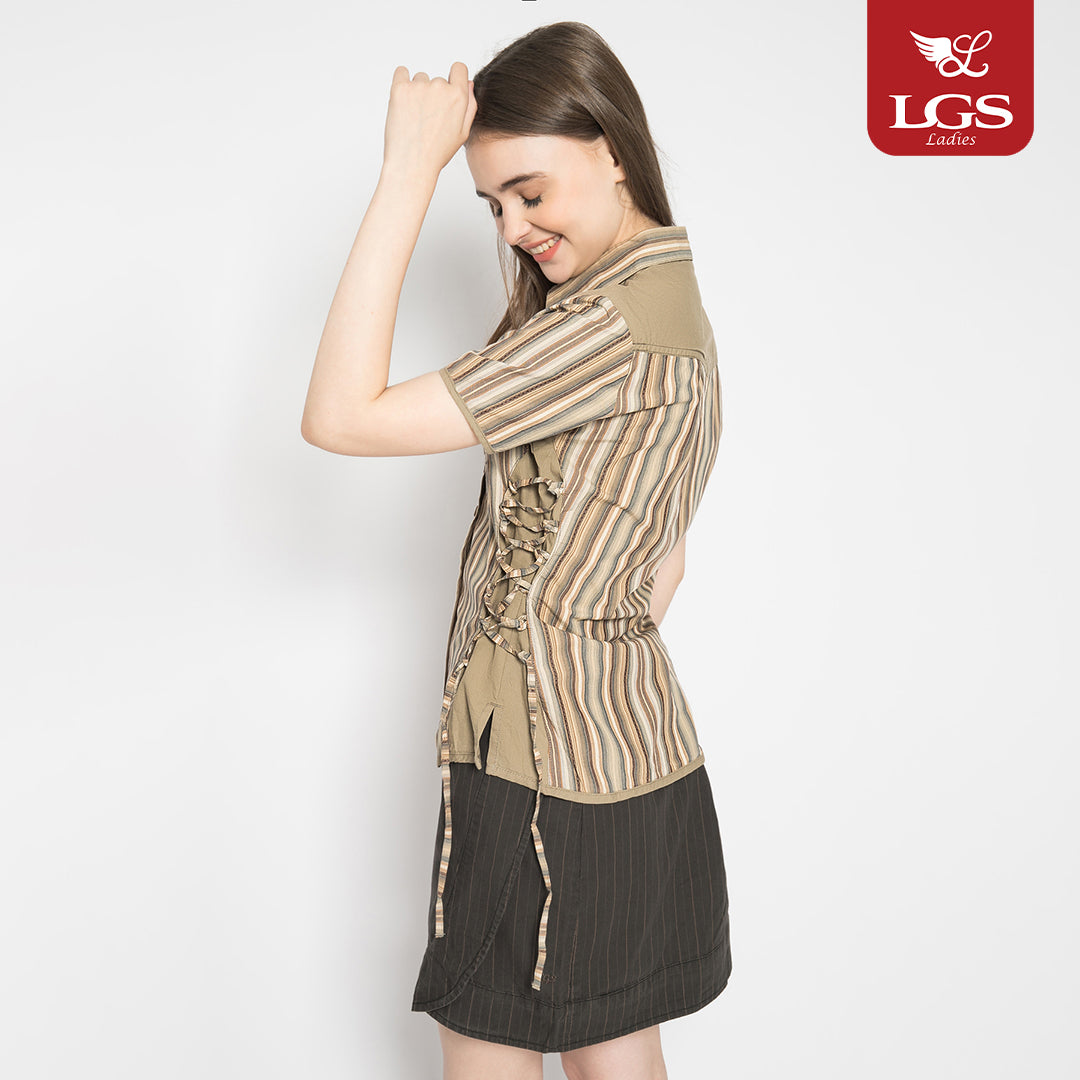 Kemeja Casual Wanita - Lengan Pendek - Salur - Coklat Kayu - LLSH.380.WD625.073.7C